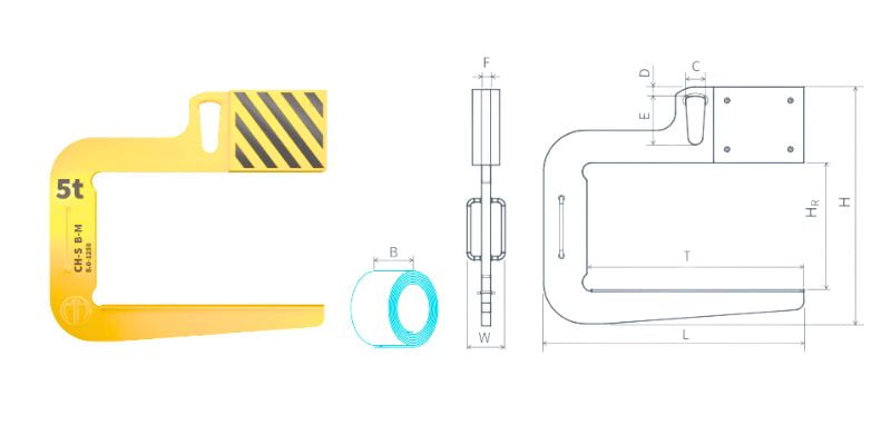 | Cod | WLL | B | T | HR | H | L | W | C | D | E | F | masa |