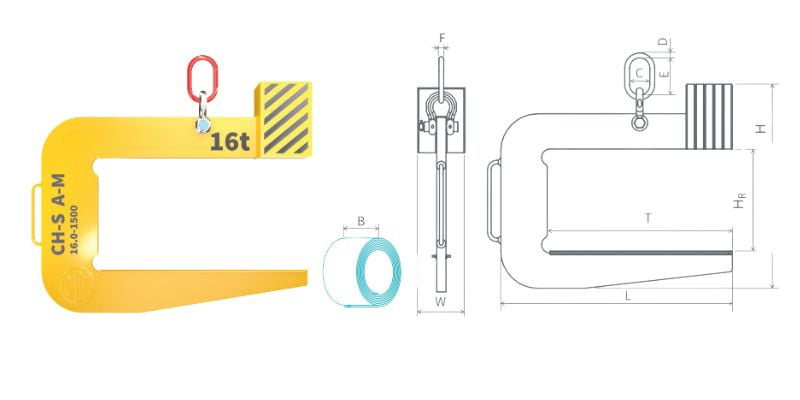 Carlig tip C pentru ridicat bobine de tabla cu sarcini de la  0.7 tona la 20 tone.