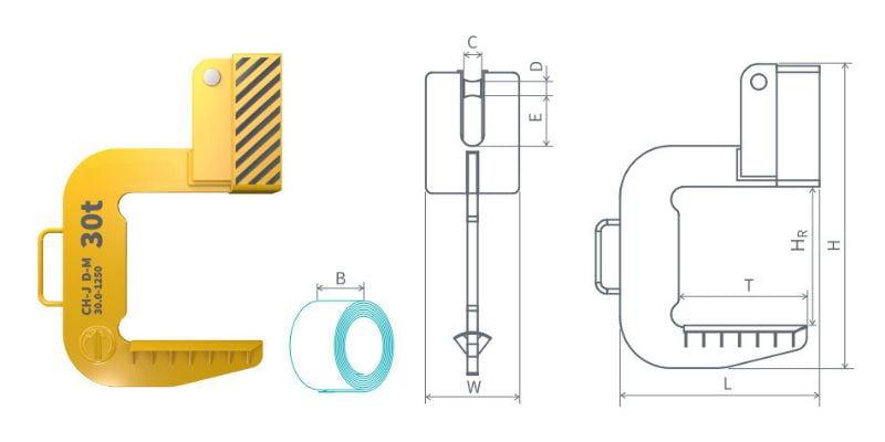 Carlig ridicat rulouri de tabla 10- 40 t, model CH-J D-M