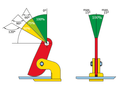 Cleste orizontal ridicat placi (clema orizontala ridicat placi metalice), cu o deschidere a falcilor între 0- 150 mm, pentru sarcini cuprinse între 1000-25000 kg/ set. Recomandat pentru ridicarea și transportul orizontal a plăcilor de oțel și a altor materiale nedeformabile.