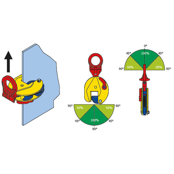 Cleste universal (clema universala) de ridicat placi metalice, cu o deschidere a falcilor între 0- 150 mm, pentru sarcini cuprinse între 750-30000 kg. Recomandat pentru ridicarea, transportul și strunjirea pe verticală a placilor și structurilor de oțel din toate pozițiile.