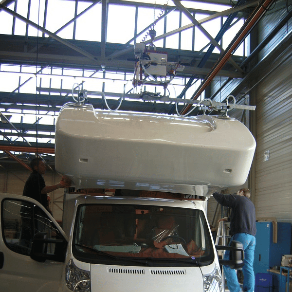 Elevator cu ventuze cu vid pentru elemente de acoperis rulote si remorci