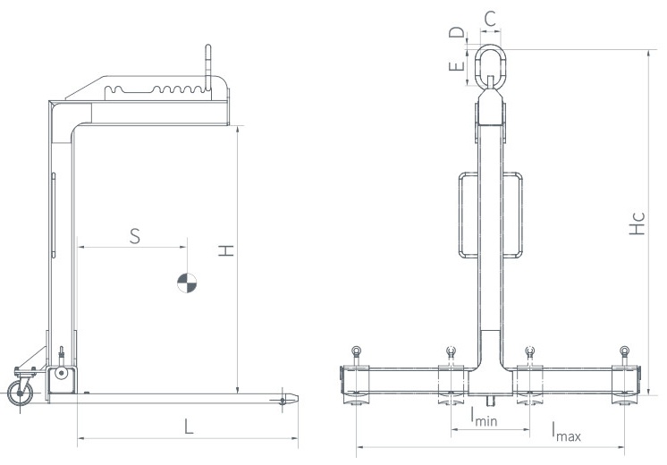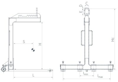 Furca macara cu deschidere reglabila pentru ridicat si transportat paleti.