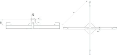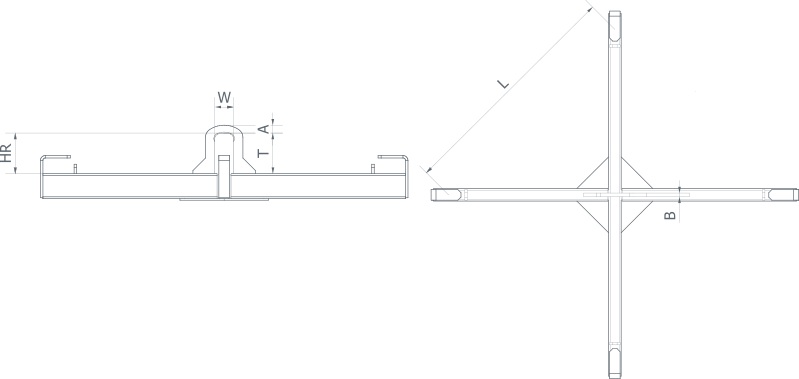 - dispozitiv de ridicare în cruce, cu 4 brațe și suport de agatare
