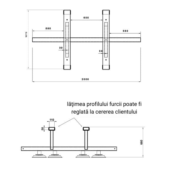- lăţimea profilului furcii poate fi reglată la cererea clientului