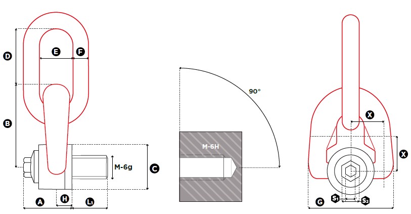 Inel de ridicare triplu articulat cu surub pentru sarcini de la 0,4 t la până la 22 t.