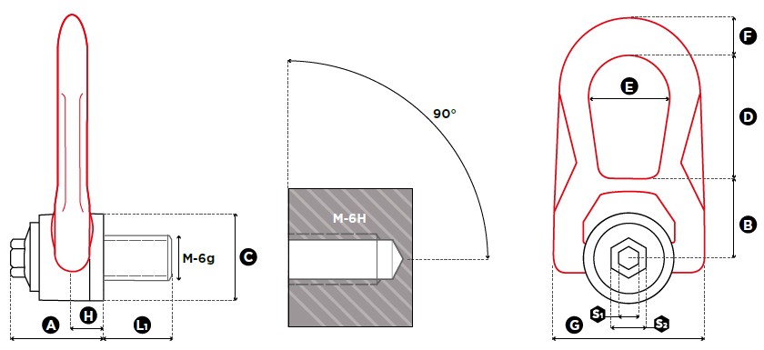 Inel de ridicare dublu rotativ cu surub (inel dublu rotativ tata) pentru sarcini de la 0,07 t la 9 t.