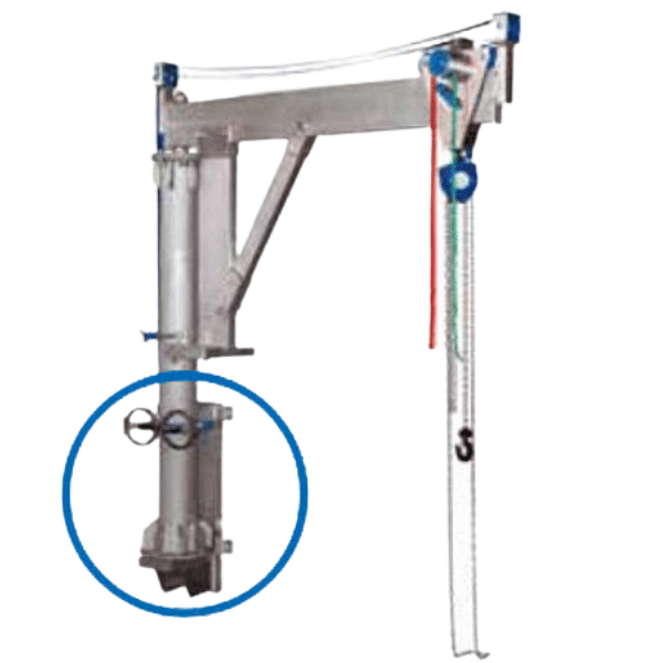 Macara pivotantă din aluminiu cu consolă, portanță 250kg/ 500kg, ușor de montat și demontat, atât pentru lucrul în interior cât și în exterior.