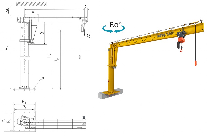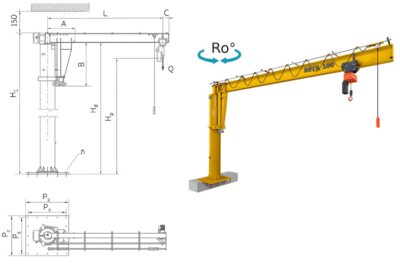Pentru ofertare, menționați capacitate (125÷5000 kg) precum și L, Hp sau Hc, destinația utilizării la interior sau exterior, echiparea cu palan manual sau electric, rotația manuală sau electrică, amplasarea pe fundație existentă sau nouă…