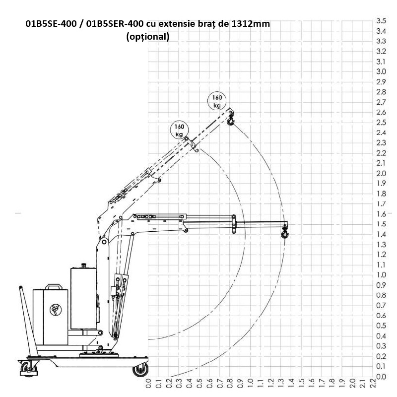 - O extensie a brațului este disponibilă (opțional), permițând creșterea extinderii (razei de acțiune) până la o lungime de 1312/1910 mm.