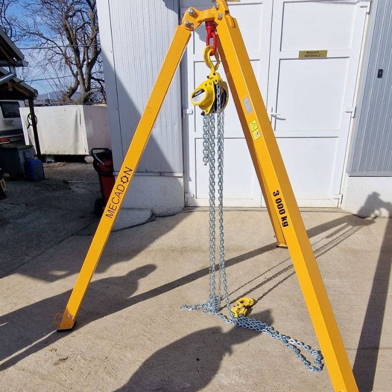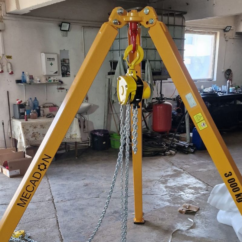 Macara tripod cu palan manual cu lanț de manevră, pentru sarcini de 1000 kg și 2000kg.