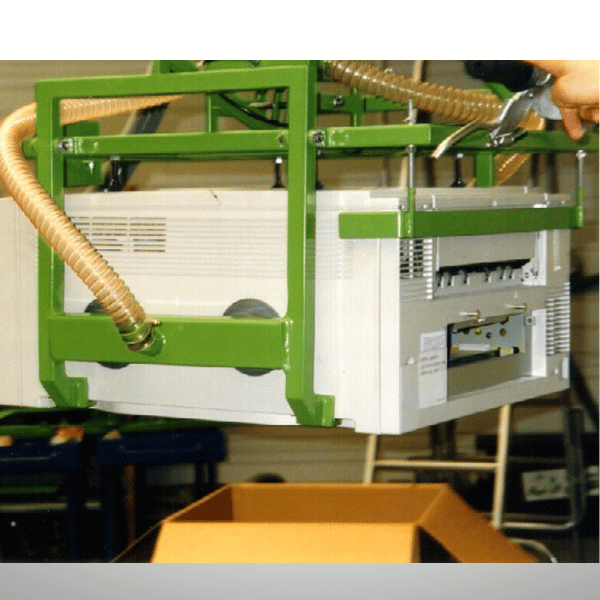 • placile de aspirare se pot schimba rapid pentru manipularea unei game largi de materiale etanșe sau poroase cu același dispozitiv (cutii, butoaie, saci, canistre, placi sau elemente din lemn)