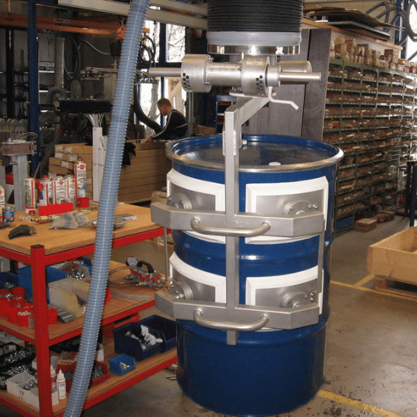 Tub cu vid pentru ridicat si manipulat butoaie de 215l | 220l cu o greutate totala de pana la 250 kg. Butoaiele ce urmeaza a fi transportate sunt fixate lateral cu ajutorul placilor de aspiratie.